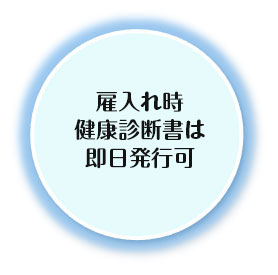 | 雇入れ時健康診断(採血あり) | 受診日当日にて結果をお渡ししています。 (※追加項目がある場合、項目内容によって後日結果渡しになることがります。) |