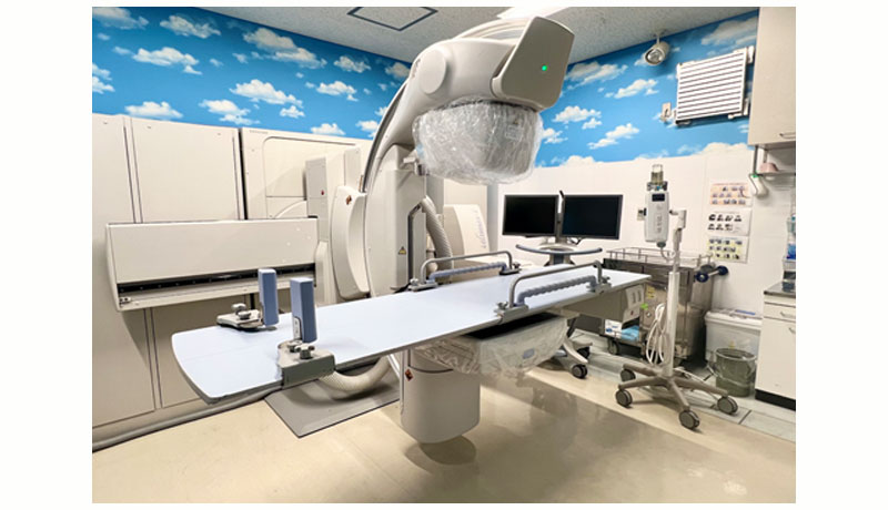 放射線科には、一般撮影(単純X線撮影)としてDR(デジタル)、マンモグラフィ(デジタル)、骨密度検査、透視台、アンギオ(DSA)、MRI、マルチスライスCT、ポータブル、外科用イメージ、PACSなどの装置を配備しています。